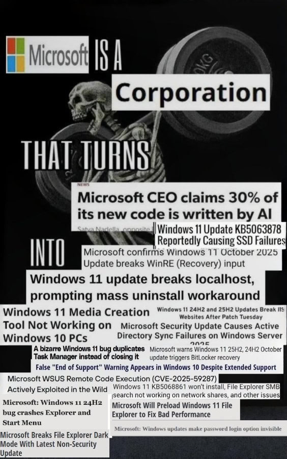 The implication is that MS is forcing AI adoption on users at a point of absurd recklessness, and that they should not be trusted - especially not blindly trusted.